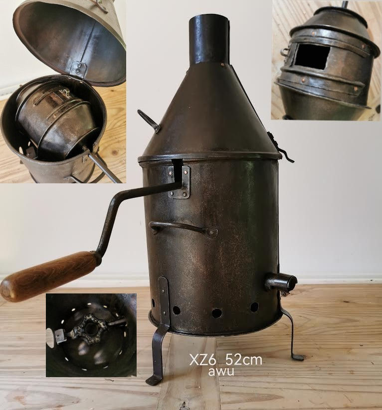 REF;XZ6 €170 Antique coffee bean roaster with gas burner attachment and revolving roasting drum. Ideal coffee shop/home decoration