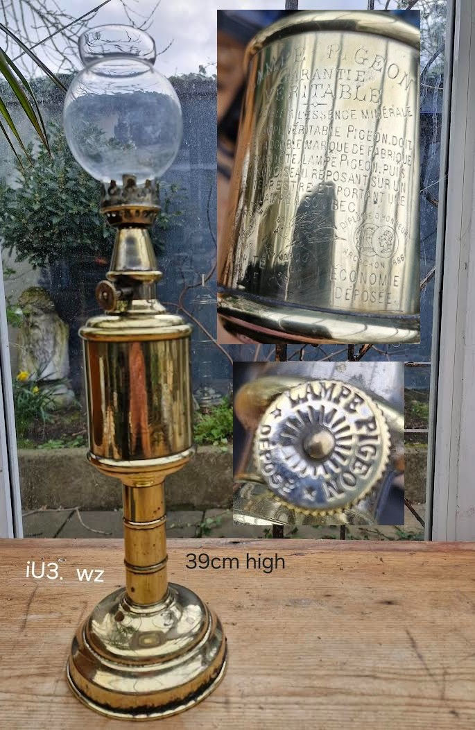 REF; iU3 €70 Tall well restored French Pigeon lamp